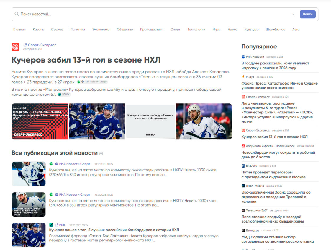 Весь массив данных, который ежеминутно обрабатывает платформа, используется не только для корпоративной аналитики, но и питает собственный публичный агрегатор новостей.