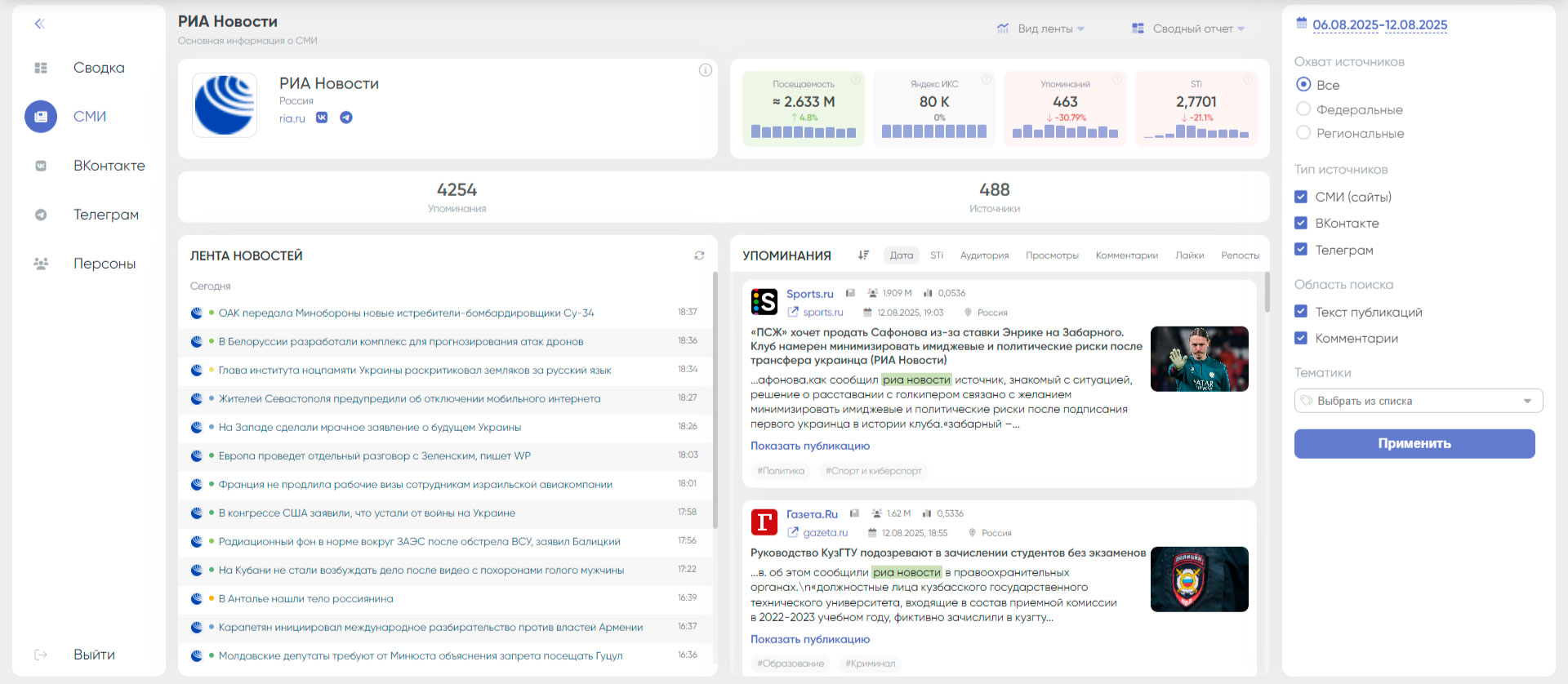• Отслеживание цитируемости: Вы видите, кто, где и в каком контексте упомянул ваше СМИ.